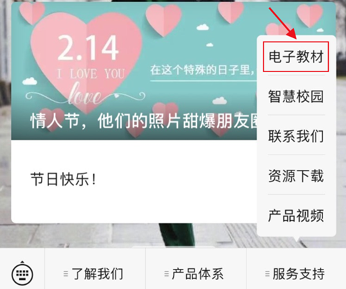 在下方菜單欄中點(diǎn)擊“電子教材”