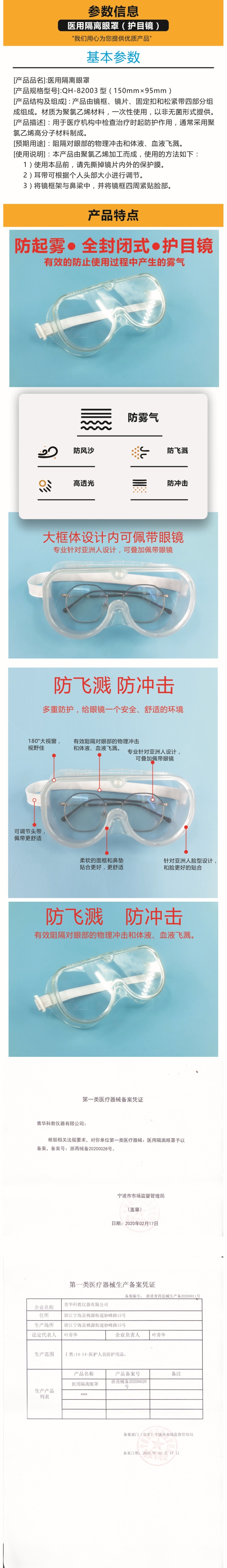 ▲青華科教醫用隔離眼罩信息