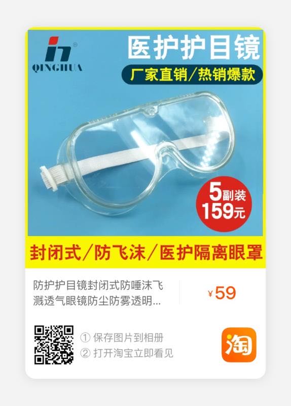 ▲青華科教醫用隔離眼罩淘寶鏈接