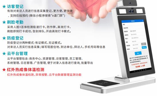 良田人證核驗體溫監測一體機H2000R,以非接觸、便捷移動和擺放、體溫自動檢測、快速篩查、云平臺數據管理監測等集成技術和功能,可有效解決防疫人員緊缺、手工測溫效率低、難以辨別是否為本人,登記效率低、不能便捷移動、數據不能實時展現和管理、一機多用等問題,并能有效避免人員交叉感染,助力各地精準便捷防疫,同時后續也可繼續用于自主訪客登記、刷臉考勤、二次開發等,為人民群眾的生命健康、財產安全等保駕護航。