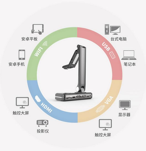 兼容觸控大屏、電子白板、投影儀等顯示設備,具有豐富的脫機展示功能;支持WIFI模塊,可與安卓手機、平板連接。
