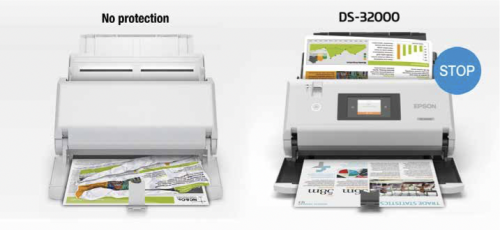 不僅如此,為給各行業用戶帶來更專業的使用體驗,DS-32000還配備有愛普生獨特的文檔保護技術。該技術能夠對進紙頂部進行檢測,判斷進紙是否正常,當掃描學生試卷或政府裝訂公文等重要文檔時,如發生忘記拆除裝釘或紙張嚴重歪斜褶皺等情況時,掃描儀可以及時自動停止掃描,最大程度地減少紙張損壞,避免重要文件損失。