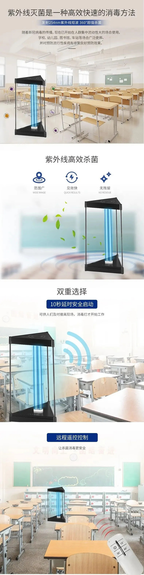 ●方案二:采用動態(tài)的消毒原理,通過空氣交換對流,應(yīng)用深紫外線對空氣實時殺菌,在人員無需離場的情況下,安全高效常態(tài)化持續(xù)消毒,且提供壁掛式、移動式、柜移式等多種產(chǎn)品。