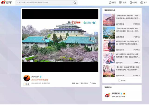 微博APP搜索“武漢大學”,進入實時直播。
