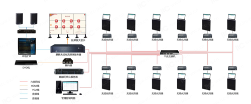 系統(tǒng)由后臺管理服務(wù)主機、采集投屏主機、升降屏幕、無紙化終端、數(shù)字會議系統(tǒng)等組合而成,適用于的各種政企單位會議場景。