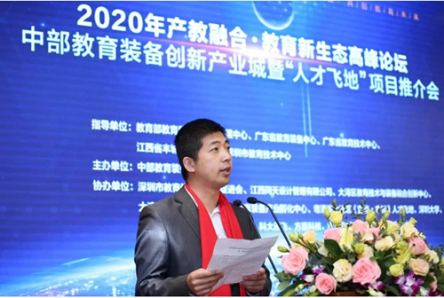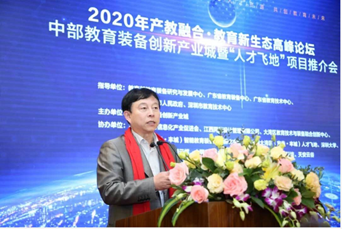 教育部教育裝備研究與發展中心主任助理金林,深圳大學教授、博導、深圳市政協四、五屆副主席、深圳大學原副校長陳思平,廣東省教育技術中心主任唐連章,廣東省教育裝備中心主任林錫江,深圳市教育信息技術中心副主任魏曉亮;江西省宜春市委常委、組織部部長余正琨,宜春市委組織部部務委員、市委人才辦主任湛海濤,豐城市委副書記、代市長徐結強,豐城市人大主任鄒小平,豐城市政協主席熊建清,豐城市委常委、統戰部部長熊曉群,豐城市委常委、組織部部長胡振群,豐城市副市長劉新根,豐城市高新區黨工委書記熊彬,以及深圳市羅湖區教育局副局長劉榮青,騰訊教育運營總經理徐勇群,華為戰略部總裁特別助理陳敏,天安駿業戰略合作中心副總經理盧曌等出席活動。金林、陳思平、林錫江、唐連章、魏曉亮、徐結強、余正琨先后致辭,對活動的召開表示熱烈祝賀,并希望通過本次活動凝聚眾智、群策群力,為教育新生態發展的開拓新思路、探索新途徑,助推和引領教育深度變革創新。