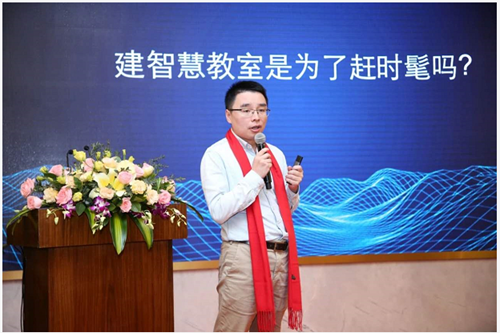 云蝶科技副總裁陳天博士、騰訊教育運營總經理徐勇群、華為戰略部總裁特別助理陳敏分別作了主題演講。分別圍繞“人工智能+教育”展望未來教育發展趨勢,充分探討人工智能在教育領域的應用和落地,其中陳天博士以《智慧教室點亮師生智慧》為主題介紹了云蝶科技新一代“AI+物聯”智慧教室整體解決方案,內容包含標準型智慧教室、研討型智慧教室、書法型智慧教室、黨建智慧教室等方案內容及其他前沿技術成果。