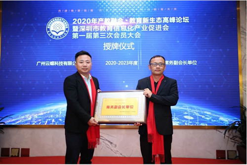 近日,云蝶科技受邀參與在深圳天安云谷舉行的2020年產教融合·教育新生態高峰論壇暨深圳市教育信息化產業促進會第一屆第三次會員大會。教育裝備和技術系統部省市各級領導,華為、騰訊、百度等知名企業嘉賓代表,以及國內知名教育專家學者、上市公司 代表、創新型企業代表、行業協會負責人、深圳市中小學校長代表等近500人共襄盛會。