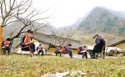 自此,每天早上,在二郎鄉王溝社王佳偉和王嘉豪兄弟倆家的院子里,人們都會看到一位清瘦的老人和6名小學生學習的身影。瑯瑯的讀書聲響徹大山,成為小山村一道亮麗的風景。