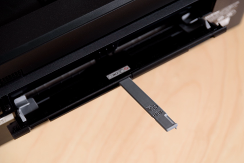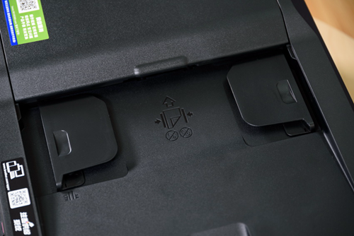 位于一體機頂部的是自動進稿器,它能自動把紙張送入打印機內部,以進行掃描或是復印,一次最多可容納20頁紙張。學生一份習題往往不會超過10頁,20頁一次復印量足以滿足日常使用了。如果用戶需要掃描或復印的是身份證、戶口本等不能彎曲的證件,可以掀起一體機頂蓋,用平板掃描器直接掃描。