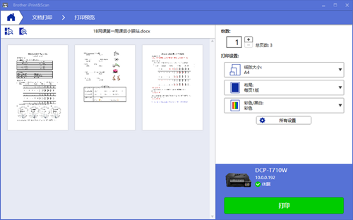 兄弟公司早研究過用戶實際需求,DCP-T710W內置了Wi-Fi網絡,用戶不僅可以通過手機APP“iPrint & Scan”控制一體機,打印、掃描文件,甚至可以通過微信小程序“兄弟暢享印”打印老師發來的作業。
