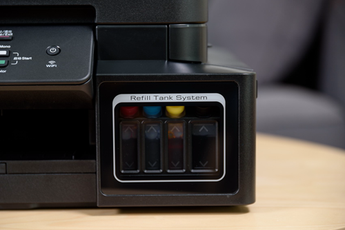 和其它電子產品不同,耗材占噴墨多功能一體機全壽命成本比重極高,那DCP-T710W這方面做得如何呢?DCP-T710W采用了黑色、青色、品紅色與黃色四色墨水,黑色墨水可打印約6500頁,彩色墨水約可打印5000頁,足以滿足一個學生一個學期的使用量。而且采用的是一體式四色分離式大容量墨倉,可單獨添加墨水,什么顏色缺墨水就給什么顏色補充墨水,既環保又降低了使用成本。