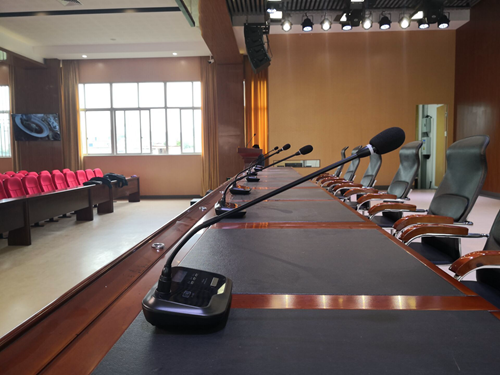 作為召開各類會議的報告廳,主席臺(舞臺)設計選擇的UHF無線會議系統,其控制及音頻信號皆采用無線高頻信號通訊。話筒安裝方便靈活,具備高保真音質,抗干擾防嘯叫的優點。系統主機可針對不同會議設置需要的會議模式,保證會議溝通討論全程高效、有序。