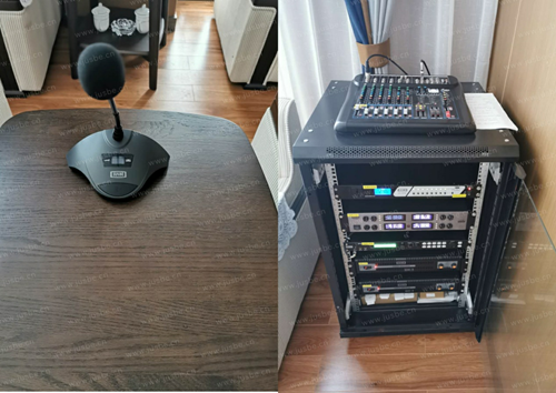 貴賓室作為重要領導參訪、貴客接見及會前等候時使用,需具備討論、洽談、展示等會議形式。對語言擴聲需高清晰度品質音質,無嘯叫無干擾影響。因此,貴賓室擴聲系統選擇的專業會議音箱,動態性能良好,音質清晰自然。討論話筒則配置的紅外對頻U段無線話筒,PLL射頻穩定技術、頻率精準,可一鍵紅外對頻設定,操作簡單又穩定。具備超強的抗干擾能力,能夠有效抑制由外部帶來的噪音干擾及同頻干擾,有效拾音距離可達60cm(視環境變化而定),使得會談更加輕松。