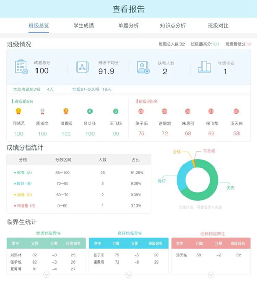不管是在線檢測還是課后作業,學生都可以在移動端人人通空間完成,無需打印,系統還會將作業完成情況及得分情況生成報告反饋給老師。既節省了老師批改作業的時間,又能讓老師對學情有更全面的了解。