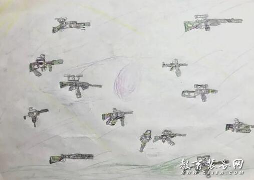 每一個男孩子心中都有一個軍人夢,許多孩子卻因為近視無法選擇參軍,一把把帶著眼睛輪廓的槍,寄托著孩子想參軍的夢想。