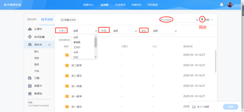 可能大家一時間很難找到自己學科使用的資料。現在我們支持學校創建文件夾,文件夾可以方便學校進行歸類,也方便老師更清晰地找到想要的資料。