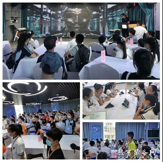 未來的教室是什么樣的?智慧校園有哪些新奇之處?7月23日-25日,南寧市五象教育集團龍堤路初級中學(xué)組織七年級500多名新生分5個批次前往廣西教育裝備展示體驗中心開展科技研學(xué)之旅。