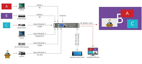 1.允許最多4+1訊號輸入合并;2.最多30個用戶預設模板;3.可以根據不同的預算選擇各種顯示方式。