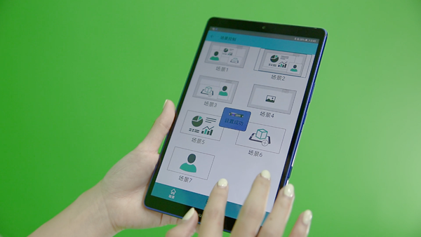 授課背景,課件導入、3D教具插件、實時影像等多視頻、多畫面,場景切換、多處學生端互動等全部操作都在平板電腦上動動手指即可輕松完成。