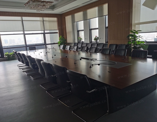 項目大樓辦公區會議室,根據會議發言需求,選擇的全功能型數字會議系統。會議主機采用數字均衡音頻處理模塊,支持低音、高音、總音量五段增益調節,可以調整音色,減少反饋聲。配套的迷你觸摸式發言單元,體積小巧,防水耐用,嵌入式安裝使得桌面大氣美觀。心型指向性電容式麥克風,拾音靈敏度極高,人聲還原真實,具備防干擾,抑制嘯叫功能。