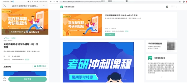 微博+直播是強大引流方式。現在商家可以通過微博小店發布直播課程,然后無縫對接有贊教育直播功能,拉群開課,并可同步查看學員信息,在直播后轉化學員。