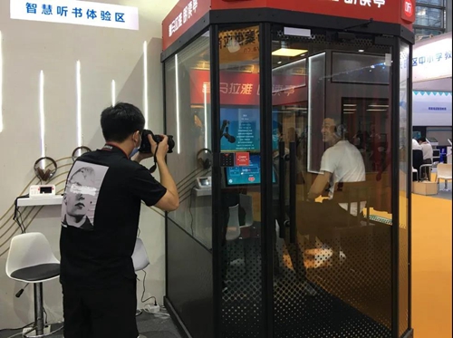 展區還設有有聲圖書墻,一套與新媒體結合的公共文化服務解決方案;讀者可通過掃二維碼獲取音頻內容,以“聽”的方式去閱讀海量書籍和優秀內容;一面墻實現文化服務的便捷性、時尚性,在解放雙眼的同時,降低獲取內容的時間成本。