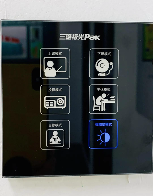 此外,結合教室的日常使用,可按需預設各類場景模式(如上課、下課、投影、自習、午休等),一鍵切換即可控制燈具及窗簾,將教室光環境調節至最佳狀態。在保證必要照明的同時,有效減少了燈具的工作時間,節省了不必要的能源開支,也延長了燈具的壽命。這種多場景智能控制,也能勝任幼兒園、美術室、心理輔導室等高需求的空間。
