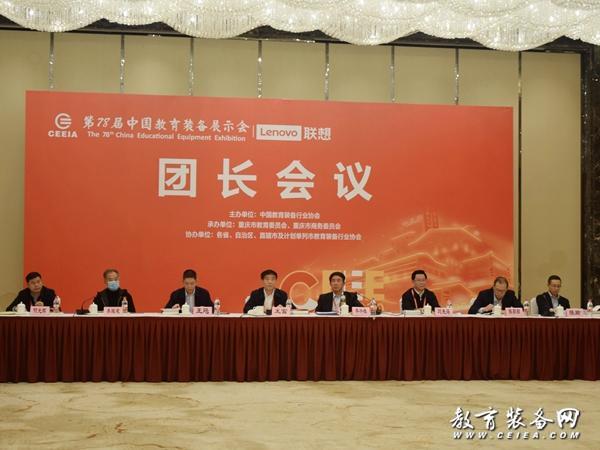 教育部關心下一代工作委員會常務副主任、中國教育裝備行業協會會長王富,中國教育裝備行業協會監事長李耀建,重慶市教育委員會二級巡視員劉先海,福建省教育廳副廳長王飏,中國教育裝備行業協會副會長兼秘書長夏國明,重慶教育信息技術與裝備中心委員會書記姚友明,重慶教育信息技術與裝備中心主任陳瑜,福建省教育裝備與基建中心主任何光輝,廈門市會展局局長陳顥穎出席團長會。中國教育裝備行業協會常務副會長李興植主持會議。