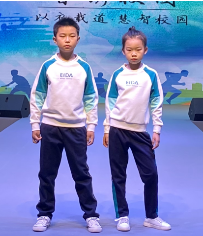 “智鐫校園”運動裝系列 ——從有光阻燃FDY長絲、薄荷纖維到中空聚酯纖維再到甲殼素纖維.....從學校教學“色視覺”的原理運用威達校服設計配色系統V1.0規范設計到RFID智能記憶芯片再到威達小程序,一系列個校服系列蘊含著海尚威達人從“實用新型”到“發明”17項專利技術。