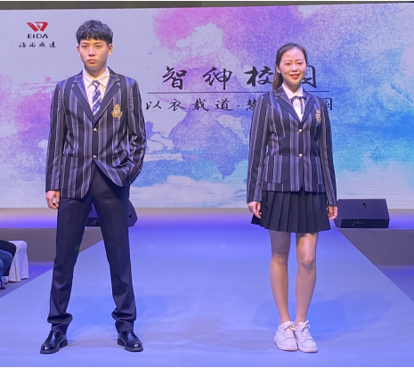 開幕式當天,威達公司就成為了本次展會上的閃爍明星,就在開幕式結束后,海尚“2021海尚威達 ‘以衣載道 . 慧智校園’主題新品發布會”首先上演—— “智鐫校園”運動裝系列 、 “智紳校園”制式校服系列 、“智康校園” 防疫學生裝系列 ,三個主題板塊,緊緊圍繞著海尚威達用“‘科技+時尚+健康’呵護孩子們的健康未來!”這一主題展開,整場發布會 “智能”、“科技”、“時尚”、“健康”、“激越”成為關鍵詞,使發布會高潮迭起,成為展會第一天的最大“爆點”。