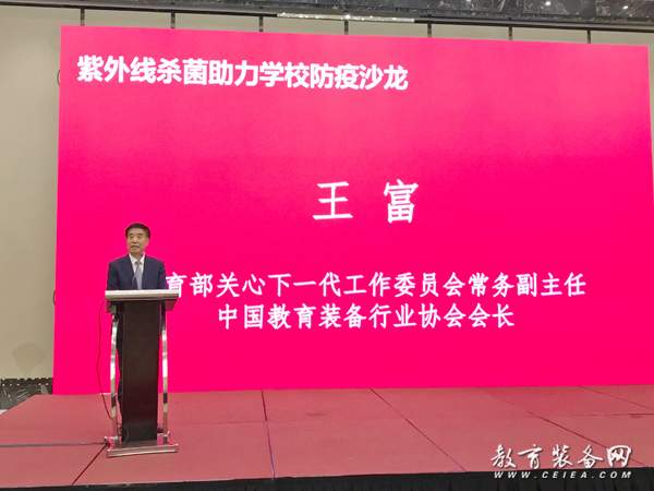 教育部關(guān)心下一代工作委員會常務(wù)副主任、中國教育裝備行業(yè)協(xié)會會長王富出席活動。他指出:“新時代,我們需要全面貫徹黨的教育方針,實現(xiàn)中國現(xiàn)代化建設(shè)的基礎(chǔ)是實現(xiàn)教育現(xiàn)代化,實現(xiàn)教育現(xiàn)代化的基礎(chǔ)是實現(xiàn)教育裝備的現(xiàn)代化。新冠疫情防疫期間,為了保證孩子們有一個健康、安全的上課環(huán)境,學(xué)校采取了各種殺菌措施,紫外線作為主要的殺菌手段,需要通過規(guī)范使用及操作方法、提高專業(yè)化管理,避免誤操作或使用不當(dāng)對孩子帶來的傷害。感謝大家今天齊聚一堂,共同研探,為關(guān)心下一代工作做出貢獻。”