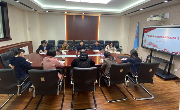 近日,中國教育裝備行業協會召開新任職干部集體廉政談話會。協會黨支部書記兼會長王富同志、監事長李耀建同志、副會長李興植同志、副會長兼秘書長夏國明同志對新任職的5位干部進行了集體廉政談話。黨支部副書記兼副秘書長朱俊英同志主持談話會。