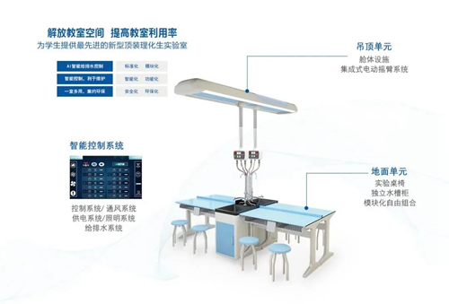 新型頂裝理化生實驗室創(chuàng)新實驗室建設及設計理念、打破傳統(tǒng)理化生實驗室地面建設方式,從地面(隱蔽)走向頂部(開放),安全智能、功能全面、建設靈活,是新一代理化生專業(yè)實驗室及學科教室的最佳解決方案。