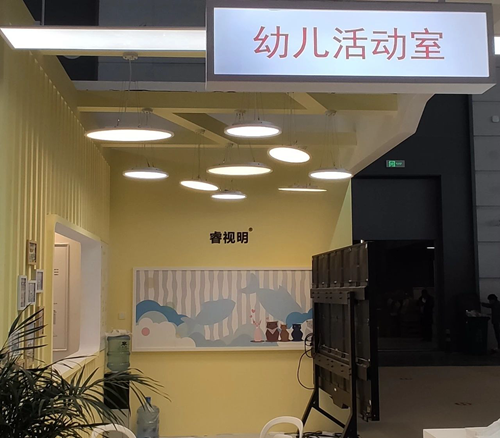 本屆展會,拓享睿視明帶來的全新幼兒園照明解決方案,采用的是幼兒專用護目面板燈,可有效控制眩光,能更好呵護幼兒尚未發育完全的眼球健康。此次展出的幼兒護目燈具組由大圓、小圓、及橢圓三個造型拼湊而成,造型新穎獨特、富有意趣,引得現場觀眾紛紛駐足。