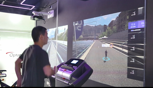奧圖碼沉浸式運動系統推出全新的沉浸式場景,你可以一會兒踏上跑步機跑跑步,一會兒跨上智能動感單車騎十分鐘,然后再去劃船機上帶動全身肌肉運動。奧圖碼沉浸式運動系統屏幕上的提示讓您在訓練時保持動力,隨著速度感受和不同的景色,體驗真正的運動感受,而且不再只是單調而重復的局部運動而已,它能讓汗水盡情的揮灑,讓身體各部分得到充分鍛煉。在虛擬的環境中還可以和同學一起訓練打CALL,在訓練中獲得快樂。