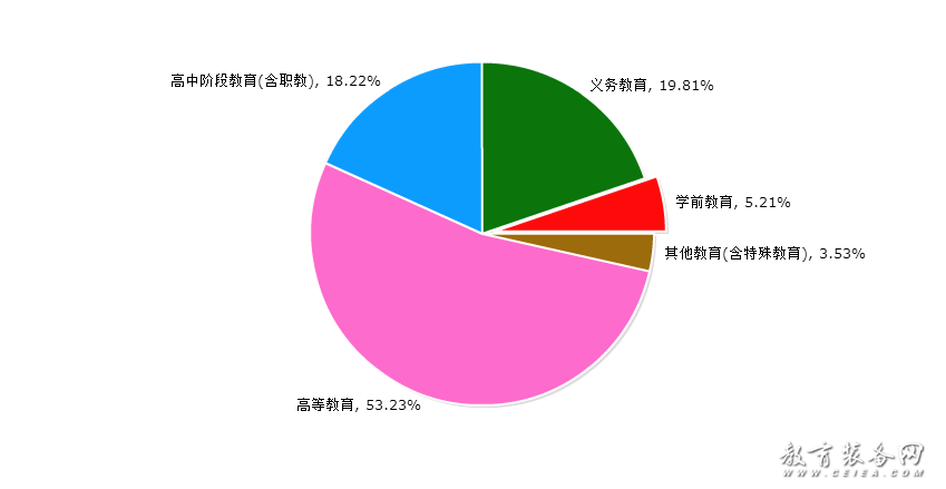 根據教育部的相關劃分,教育裝備網將教育范圍具體設置為學前教育、義務教育、高中階段教育(含職教)、高等教育、其他教育(含特殊教育)。