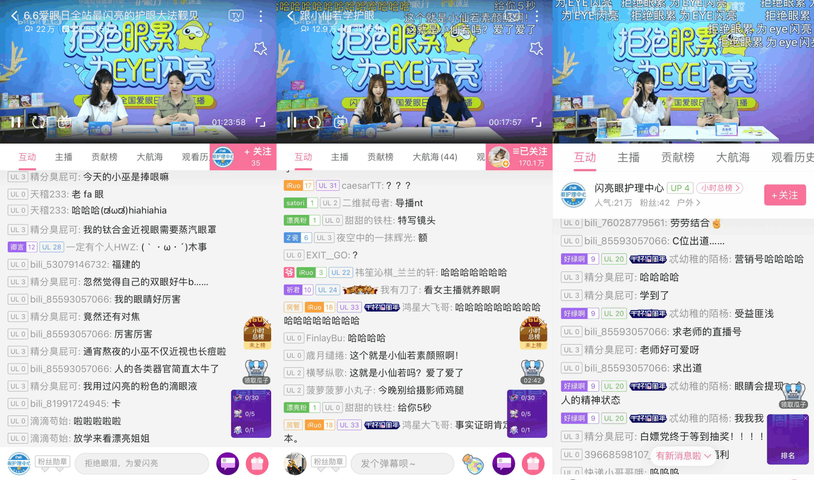 2020年疫情影響下,學(xué)生居家網(wǎng)課數(shù)量增多,閃亮品牌適應(yīng)疫情環(huán)境試水直播科普,在愛眼日聯(lián)合B站開展“閃亮護眼行”專家科普直播活動。此次科普直播選擇在B站進行推廣,目的也是近距離接觸年輕群體,實現(xiàn)活動目標(biāo)受眾和直播觸達人群的高度吻合,實現(xiàn)活動投放的高精準(zhǔn),力求產(chǎn)生1+1>2的傳播效果。與此同時,用戶也可以通過B站特有的彈幕形式參與直播互動,和品牌近距離,在雙方共同營造輕松、趣味的氛圍中,實現(xiàn)寓教于樂的公益?zhèn)鞑r值。