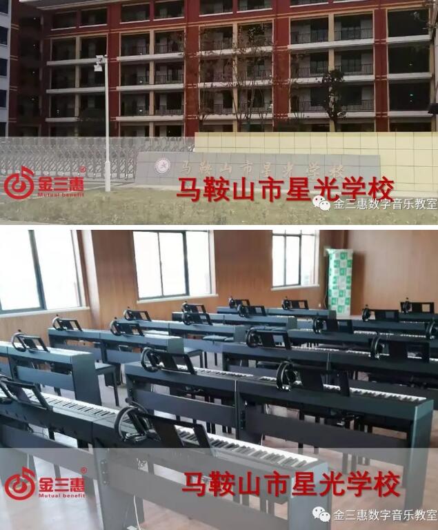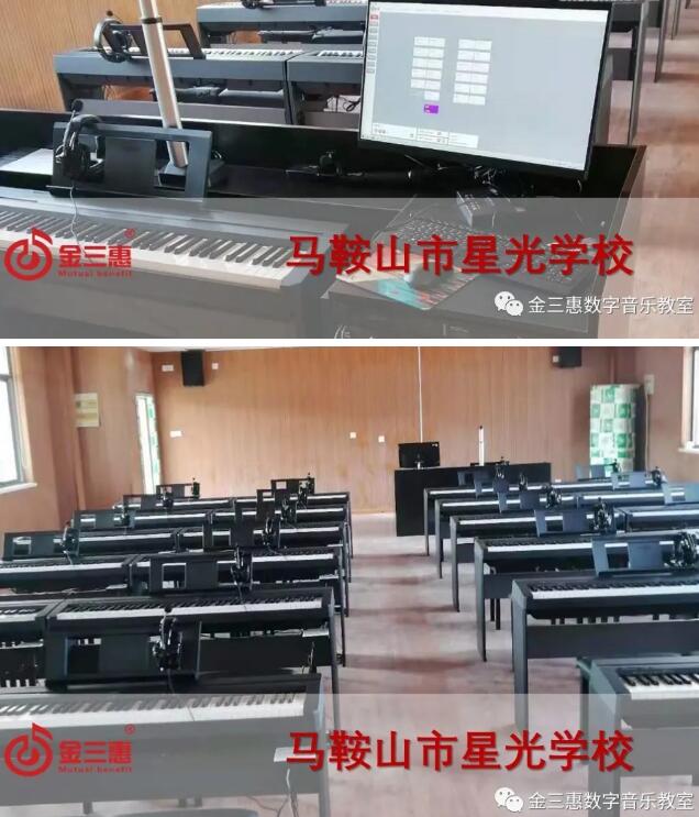 安徽省馬鞍山市星光學校的電鋼琴教室正式開始使用,本校數字化音樂教室由北京金三惠科技有限公司負責提供、安裝、培訓。 金三惠依據客戶需求,提供了數字化音樂教室,配備了金三惠數字化音樂教學系統、鋼琴、樂器等整套設施。