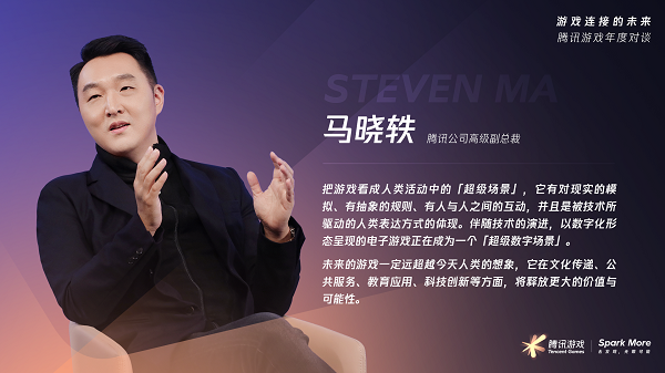 隨著數字化進程不斷加速,虛實融合的世界離我們越來越近。游戲,正站在一個充滿各種可能性的時代路口。馬曉軼在會談中提到,如何用游戲中的技術和能力去連接現實的世界和人,激發出更多的想法、嘗試和興趣,創造更大的社會價值,是騰訊游戲致力實現的目標。
