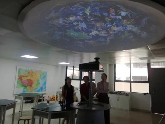 在培訓時,學校的金校長,科學課的孔老師以及學校其他學科的一些老師都積極認真的加入到培訓中。培訓講師朱寧老師為大家分別展示了適用于小學科學課的球幕素材(如:月球與月相)和穹頂素材(如:認識云)。