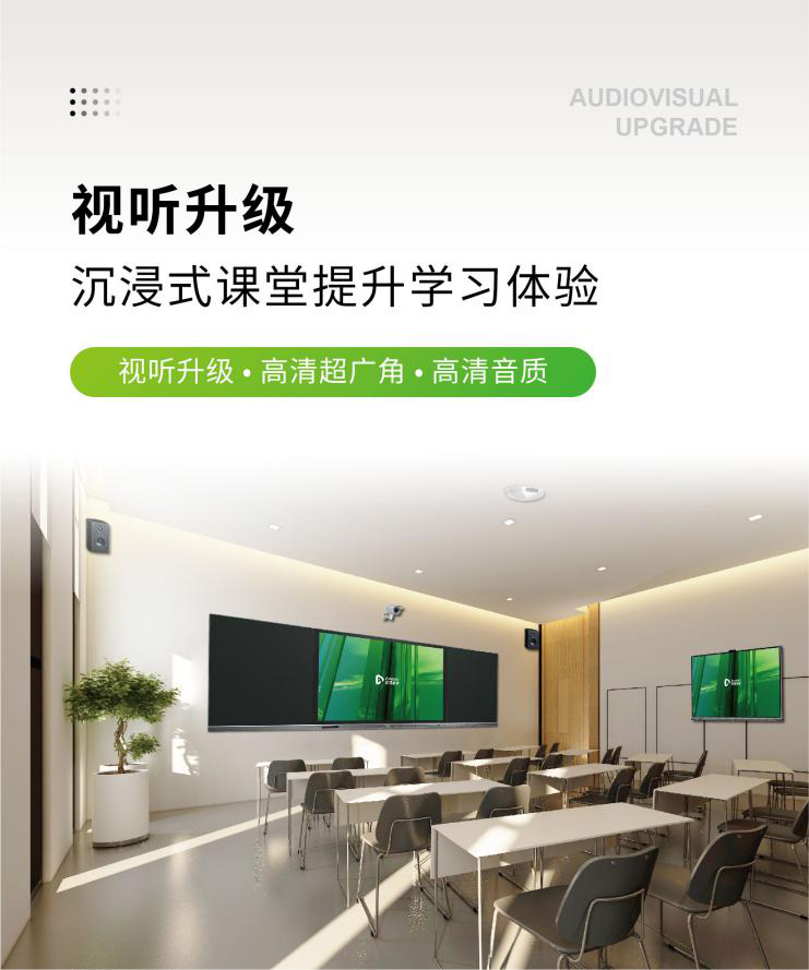 納米智慧大屏黑板配置8M超廣角攝像頭,自動對焦,全場景拓展,捕捉每個精彩瞬間。60w多聲道高保真音響搭配雙陣列麥克風,不僅音質飽滿,還能智能降噪,打造歌劇院級別聲場環境,讓每個學生都能享受身臨其境的教學視聽效果,營造沉浸式的教學氛圍。