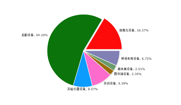 根據對教育裝備細分的歸納,教育裝備網將教育裝備具體劃分為七大類,即信息化設備(含智能平板、錄播系統、智慧黑板等),后勤設備(含校園基建、安防設備、食堂設備、課桌椅等),實驗儀器設備(含儀器儀表、實驗室平臺等),實訓設備(含實訓系統、實訓設施等),圖書館設備(含借還系統、微型圖書館等),音體美設備(含樂器、體育設施、美術用品等),其他專用設備(含創客教育、心理健康特教設備等)。