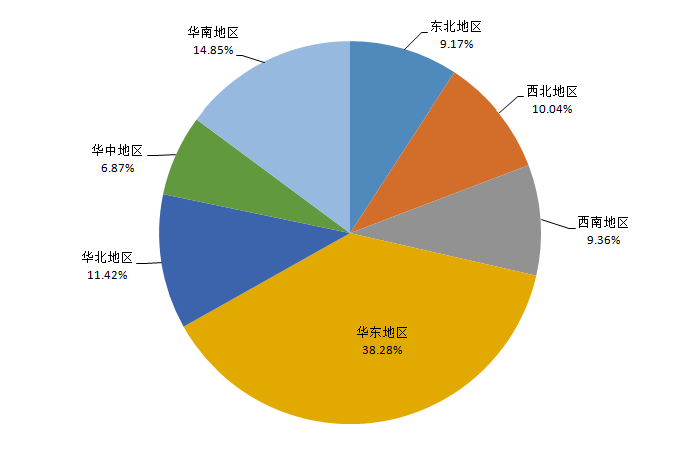 按照國家地理區域劃分,即東北地區、西北地區、西南地區、華東地區、華北地區、華中地區、華南地區(收集數據中不含中國港澳臺地區)。