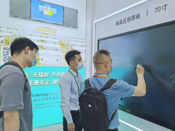 今天,多個(gè)省市的教育行業(yè)人士和客戶(hù)在好易寫(xiě)展臺(tái)觀摩體驗(yàn)新品,與我司人員就液晶壓感黑板技術(shù)標(biāo)準(zhǔn)、功能參數(shù)和售后服務(wù)進(jìn)行了深入交流。對(duì)實(shí)際工程中的產(chǎn)品使用和維護(hù)存在一些疑問(wèn),我司現(xiàn)場(chǎng)專(zhuān)業(yè)人員就此進(jìn)行了一一解答和現(xiàn)場(chǎng)演示。現(xiàn)場(chǎng)人士對(duì)液晶壓感黑板產(chǎn)品給予了高度評(píng)價(jià),希冀好易寫(xiě)能盡快實(shí)現(xiàn)對(duì)70寸的產(chǎn)品定型和量產(chǎn),抓住信息化變革的春風(fēng),一起把服務(wù)智慧教育的工作做好、做實(shí)。