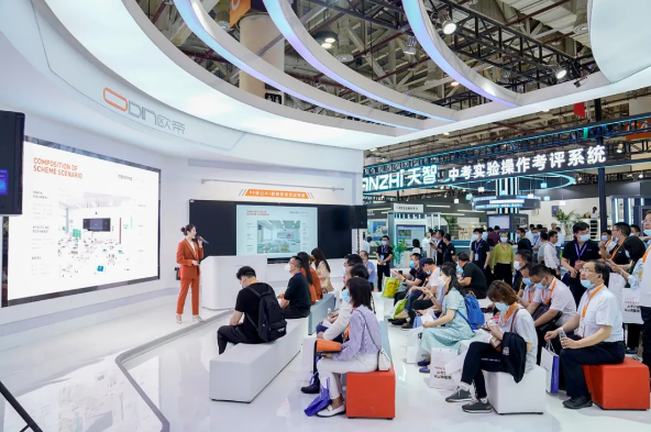 以星際探索主題而設計的歐帝展位(C4-004)吸引了眾多觀眾到訪,現(xiàn)場熱鬧非凡。其中,本次展會發(fā)布的人工智能校園解決方案尤為吸睛,標準型智慧教室、多屏互動智慧教室、培訓教室、智慧黨建體驗區(qū)也擠滿了前來參觀的觀眾。工作人員詳細地講解、演示,讓觀眾對各解決方案和產(chǎn)品有了更深的認識。現(xiàn)場精彩的互動活動將展會氣氛推向高潮。