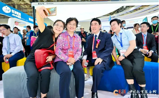 中國關心下一代工作委員會副主任、中紀委駐教育部紀檢組原組長田淑蘭,中國教育裝備行業協會常務副會長李興植等參加開幕式的領導、嘉賓蒞臨天智展位參觀指導。行業領導們對天智AI評分系統的創新和專業水平給予了高度贊譽,并對天智迎合教育改革方向將人工智能AI運用到實驗操作考評中,提高了評卷效率,予以高度評價和認可!