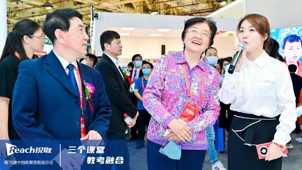 教育部原黨組成員、原中央紀委駐部紀檢組組長田淑蘭、中國教育裝備行業協會常務副會長李興植等領導蒞臨銳取展位,現場親臨體驗智慧教育生態視界,并對銳取優質產品及解決方案給予了極大的肯定與贊許。