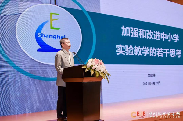 在主題報告環節,上海市教育委員會教育技術裝備中心主任竺建偉以《加強和改進中小學實驗教學的若干思考》為主題,提出要把握“實驗”的本質和實驗教學的價值取向,聚焦實驗教學的研究和管理,重構實驗教學環境,提升教師實驗教學能力。