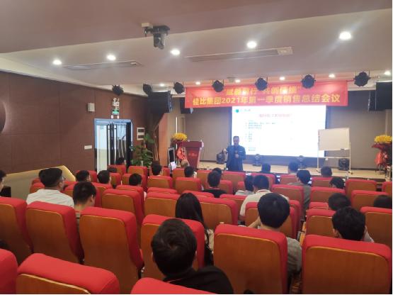 會議開始,集團董事長夏總進行了重要開場發言。接著集團部門負責人、子公司總經理對2021年第一季度工作進展和銷售業績作了總結匯報,同時明確第二季度的工作布局規劃及銷售目標。